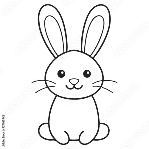 Adobe IllustratCute kawaii bunny and baby cartoon character coloring page vector illustration. Pet animal, mothers day colouring page for kidsor Artwork.