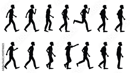 Adobe Illustrator Arbusiness man Collection of Businessmen in Suits with Beards - Black and White Vector Illustration" Set of Stick Figure Walking Silhouettes in Different Poses – Vector Arttwork