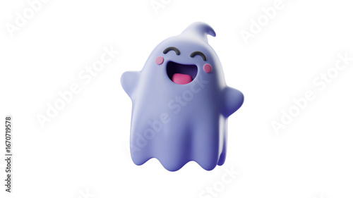 ghost, halloween, skittish, cute, character, three-dimensional, render, illustration, animation, cartoon, friendly, happy, smiling, purple, pastel, playful, whimsical, supernatural, spirit, phantom, apparition, monster, creature, design, graphic