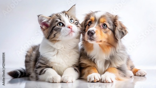 puppy, cat, kitten, kiss, animal, pet, friendship, adorable, cute, dog, white background, isolated, studio, photo, image, playful, furry, love, affection, sweet, charming, tender, heartwarming, happy, joyful, domestic animals, canino, felino, mammal, animal portrait, purebred, best friend