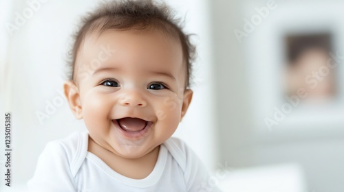 Adorable Baby Smiling Brightly in Soft Focus Setting with Natural Light : Generative AI