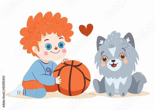 Adorable Boy and Kitten Playing with Toys in Pastel Colors