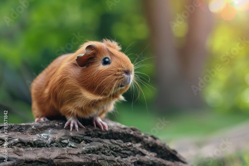 Adorable Brown Guinea Pig Closeup with Curiosity on Colorful Background