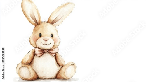 Adorable cartoon bunny rabbit wearing a bow tie, sitting on white background.