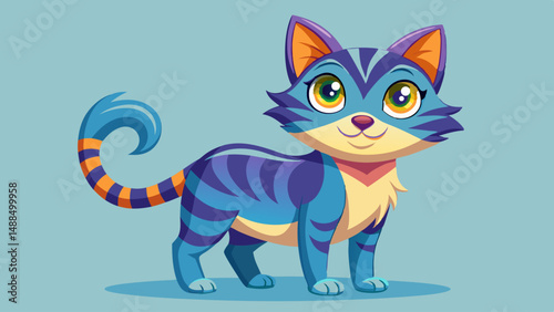 Adorable Cartoon Cat with Blue and Orange Stripes
