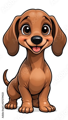 dog, puppy, dachshund, cartoon, illustration, cute, adorable, pet, animal, mammal, canino, domestic, brown, happy, smiling, cheerful, joyful, friendly, playful, sweet, charming, lovely, delightful, graphic, digital, drawing, art, artwork, design, image, picture, clip art, vector, portrait, character, whimsical, fun, companion, loyal, paw