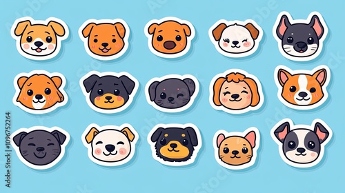 adorable, cartoon, dog, sticker, set, cute, animal, face, graphic, colourful, design, illustration, fun, playful, character, emotional, happy, pet, puppy, expression, animation, bright, cheerful, friendly, stylish, smiling, vector, art, creative, children, young, youth, decor, accessory, joyful, digital, graphic, collection, unique, trendy, delightful, charming, whimsical, simple, easy, eye-catching