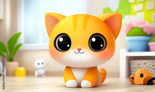 cat, kitten, cute, adorable, cartoon, orange, animal, pet, felino, fluffy, furry, big, eye, happy, cheerful, playful, sweet, lovely, charming, friendly, innocent, childish, small, tiny, little, young, room, home, house, interior, design, decoration, background, wallpaper, illustration, art, graphic, digital, rendering, three-dimensional, model, image, photo, picture, asset, content, element