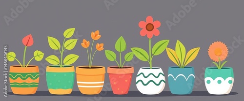 Adorable cartoon potted plants with simple botanical designs in flat style, summer decor, illustration