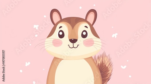 Adorable Cartoon Squirrel Character with Rosy Cheeks on Pink Backdrop