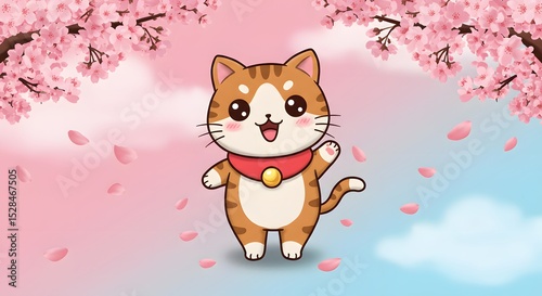 cat, kitten, cat, pet, cute, adorable, manga, anime, cherry, blossom, sakura, flower, pink, spring, nature, happy, joyful, cheerful, sweet, charming, lovely, pretty, beautiful, soft, gentle, peaceful, calm, serene, relaxed, illustration, digital, art, design, graphic, background, pastel, colours, flower petals, sky
