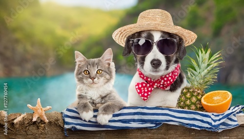 Adorable Cats and Dogs Enjoying a Fun Summer Holiday Adventure: Playful Moments, Sunny Days, and Heartwarming Memories Captured in .jpg