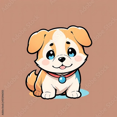 puppy, cartoon, illustration, dog, adorable, cute, whimsical, pet, animal, art, drawing, design, graphic, sweet, charming, happy, playful, fluffy, expression, eye, big, red, collar, sitting, digital, artwork, clip art, vector, image, commercial, product, branding
