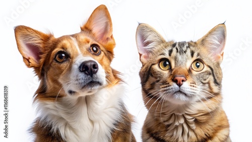 dog, cat, pet, animal, isolated, white background, studio, photo, animal portrait, canino, felino, companion, best friend, friendship, together, cute, adorable, playful, happy, looking away, profile, image, picture, graphic, digital, download, hi-res, professional, clean, bright, lighting, studio shot, high-quality