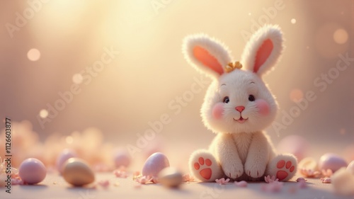 easter, rabbit, rabbit, egg, spring, sunlight, cute, adorable, fluffy, white, colourful, pastel, celebration, holiday, festive, decoration, joy, happiness, childhood, innocence, greeting, card, three-dimensional, render, illustration, background, design, whimsical, playful, cheerful, vibrant, warm, happy