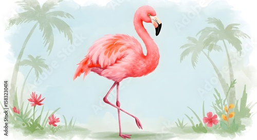 Adorable flamingo painted in gentle watercolor style, ideal for desktop backgrounds, feminine design, or nature-inspired art.