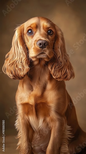 dog, puppy, cocker spaniel, pet, canino, animal, brown, fur, cute, adorable, playful, loyal, happy, friendly, love, companion, faithful, portrait, animal portrait, brown eyes, ear, nose, mouth, tail, paw, sitting, studio, background, brown background, soft focus, spaniel, cocker, dachshund, isolated, white, mammal, purebred, breed, pet, pedigree, domestic, red