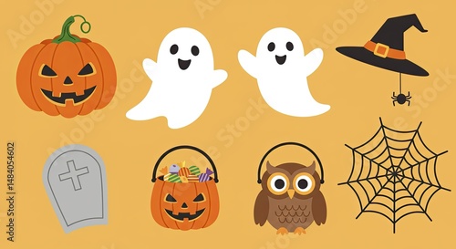 halloween, autumn, fall, skittish, ghost, pumpkin, illustration, cute, spider, web, sorcerer, hat, owl, gravestone, candy, trick or treat, festive, holiday, season, scarey, october, graphic, design, background, orange, happy, smiling, character, element, decoration, celebration, fun, vector, drawing, art, isolated, cartoon, clip art, symbol, graphic design, greeting, invitation, party, event, children, children, sweet, colours, object