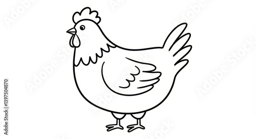 Adorable Hen Illustration - A simple line drawing of a hen, perfect for coloring pages, children's books, or farm-themed designs