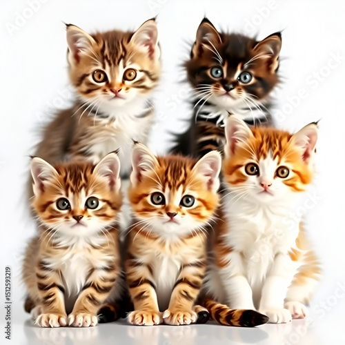Adorable kittens sitting in various poses against a transparent background.