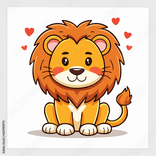 Adorable Lion Cub Surrounded by Hearts, Perfect for Valentine's Day or Children's Illustration
