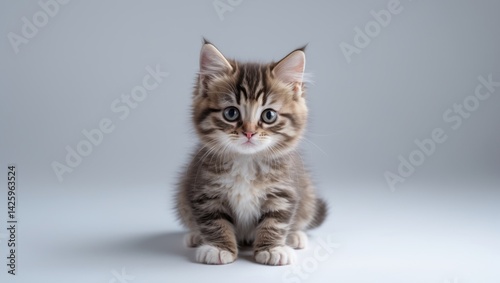 kitten, cat, white, background, cute, little, tabby, brown, portrait, british, camera, small, fluffy, hair, view, pet, striped, short, sweet, adorable, isolated, animal, young, felino, breed, pedigree, female, looking, 1, short hair, sitting