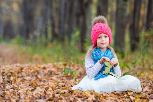 Adorable little girl outdoors at beautiful autumn day
