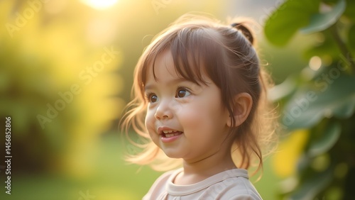children, baby, children, toddler, infant, girl, cute, adorable, sweet, innocent, happy, joyful, cheerful, smiling, daydreaming, daydream, dreamy, imagination, daylight, outdoors, outside, nature, park, garden, portrait, head shot, closeup, profile, looking away, one person, small, young, youthful, innocence, childhood, carefree, happiness, eye, hair, expression, bright, light, sunny, warm, soft, peaceful, serene, tranquil, calm