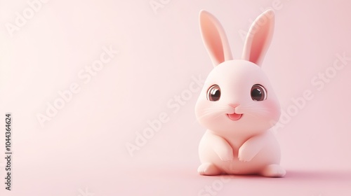 Adorable little rabbit with a big smile, characterized by a chubby cartoon style typical of Chinese animated animals. This delightful character features large, expressive eyes