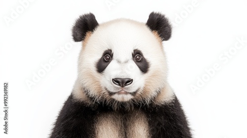 Adorable Panda Bear on White Background - Close-Up Portrait of Cute Panda with Black and White Fur