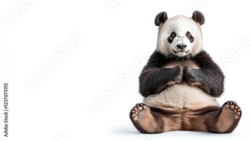 Adorable Panda Sitting, White Background, Studio Shot, Conservation Awareness