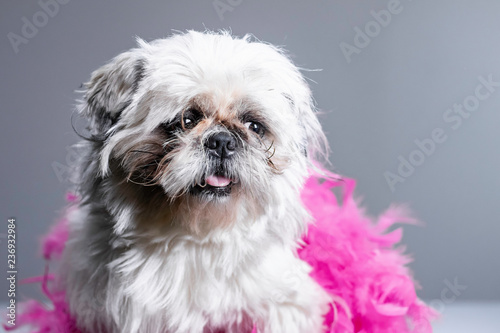 adorable, looking, cute, february 14, sweet, birthday, valentine, holiday, present, gift, happy, greeting, card, ugly, funny, silly, portrait, studio, professional, feather, small, furry, curly, fur, pedigree, background, young, isolated, doggy, fluffy, mammal, breed, domestic, purebred, puppy, canino, white, pet, dog, animal, hilarious, melting, tongue, smile, uplifting, companion