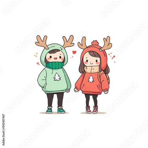 couple, reindeer, winter, cute, adorable, christmas, holiday, love, cartoon, illustration, drawing, art, digital, design, graphic, happy, sweet, affectionate, friendship, festive, merry, celebration, togetherness, girl, boy, friends, affection, lovebirds, christmas, winterly, sweater, hoodie, backpack