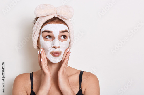 attractive, treatment, mood, model, eye, lifestyle, beauty, ageing, girl, touching, emotion, female, funny, high, fashionable, health, healthy, shot, hand, honed, dermatology, mask, expression, grooming, charming, being, white, beautiful, glowing, towel, fashion, woman, facial, skin, cosmetology, cosmetic, shocked, care, clean, young, concept, spa, face, wellness, gorgeous, image, background