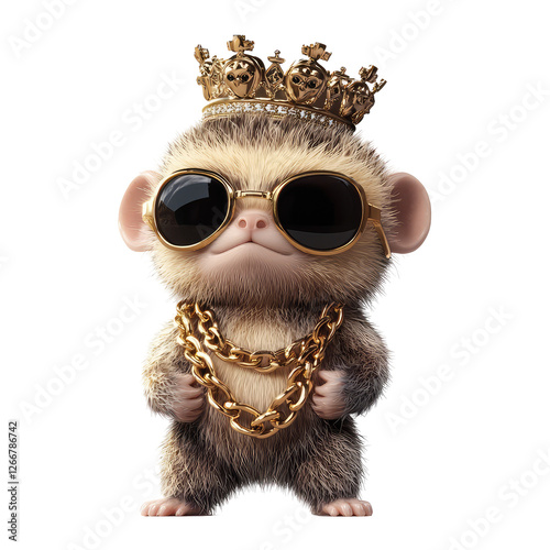 cute, hip, hop, monkey, gold, chain, crown, sunglasses, animal, furry, fashion, costume, portrait, fun, playful, unique, character, trendy, vibrant, expressive, lifestyle, pose, cool, whimsical, creative, cartoon, accessory, personality, charming, joyful, entertainment, art, photo, illustration