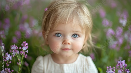 Adorable Toddler Girl Amidst Purple Flowers