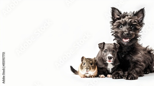 pet, dog, guinea pig, animal, cute, fluffy, companion, together, family, pose, white background, adorable, friendly, domestic, mammal, group, furry, animal portrait, indoor, puppy, sibling, companionship, calm, welcoming, joyful, purebred, hybrid, three, lifestyle, social, bonding, shaggy, playful, friendship, relaxation, ai