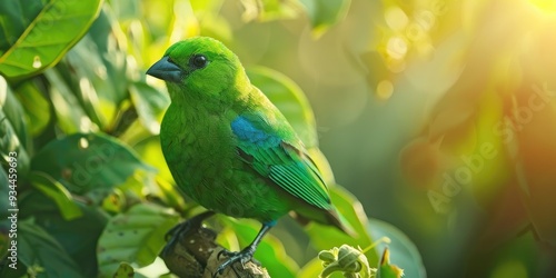 Adorable tropical green songbird Stunning tanager Chlorophonia cyanea from Colombia