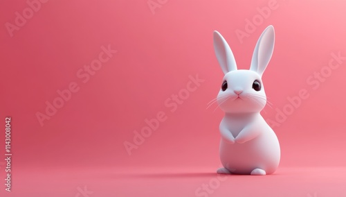 Adorable White Bunny on Pink Background: A Cute 3D Render