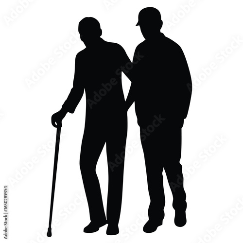 family, son, eltern, support, care, love, together, human relationships, silhouette, adult, generational, bonding, help, comfort, parenting, illustration, graphic, design, vector, people, human, connection, togetherness