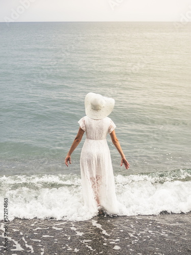 white dress, hat, woman, alone, peaceful, sea, ocean, beach, holiday, vacation, freedom, nature, spain, andalusia, concept, single, love, water, salt, shore, sand, mediterranean, one person, female