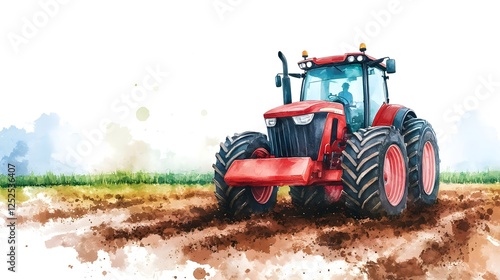 Advanced Agricultural Machinery Efficiently Cultivating Sustainable Farmland in Watercolor Style