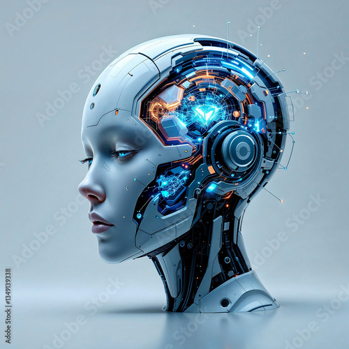 Advanced high-tech android head. Nanotechnology. Artificial Intelligence.