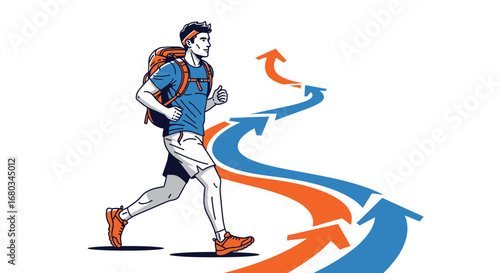 growth, ambition, progress, achievement, direction, journey, trail, success, aspiration, future, moving, forward, running, trail, hiking, outdoors, activity, healthy, lifestyle, energetic, exercise, backpack, travel, exploring, destination, fitness, challenge, motivation, inspiration, upward, climb, navigate, wanderlust, strategy, plan, evolution, vector, illustration, design