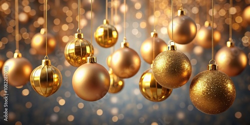 christmas, decoration, aerial, golden balls, pendant, ceiling, festive, holiday, celebration