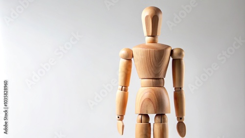 mannequin, wooden, isolated, white background, closeup, aerial view