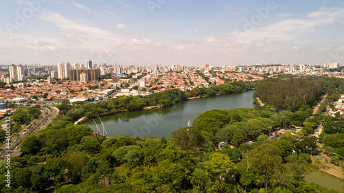 Aerial drone images from the Taquaral park in Campinas, São Paulo. With a view to Cambuí.
