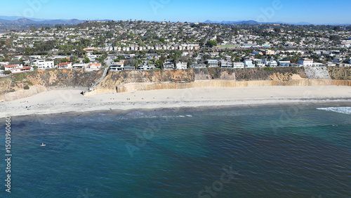 Aerial drone photo of Cardiff beach a true surfers paradise in West Coast of California, Encinitas, United States of America