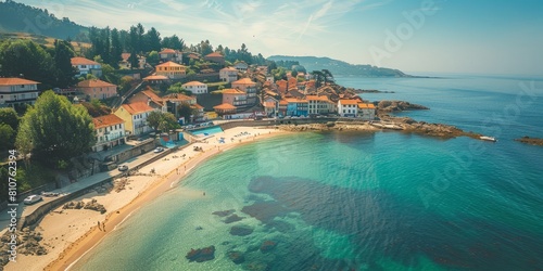 aerial, drone, view, coastal, town, beach, summer, sea, coast, travel, vacation, mediterranean, bay, landscape, holiday, beautiful, island, coastline, nature, adriatic, sky, architecture, water, resort, tour tourism, europa, village, shore, sunny, scenic, building, illustration