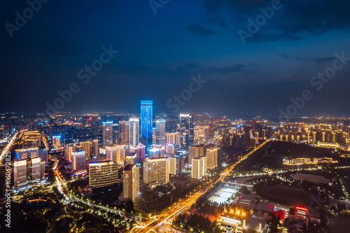 Aerial night view of the skyline of the high-tech CBD city in Xi'an, Shaanxi, China